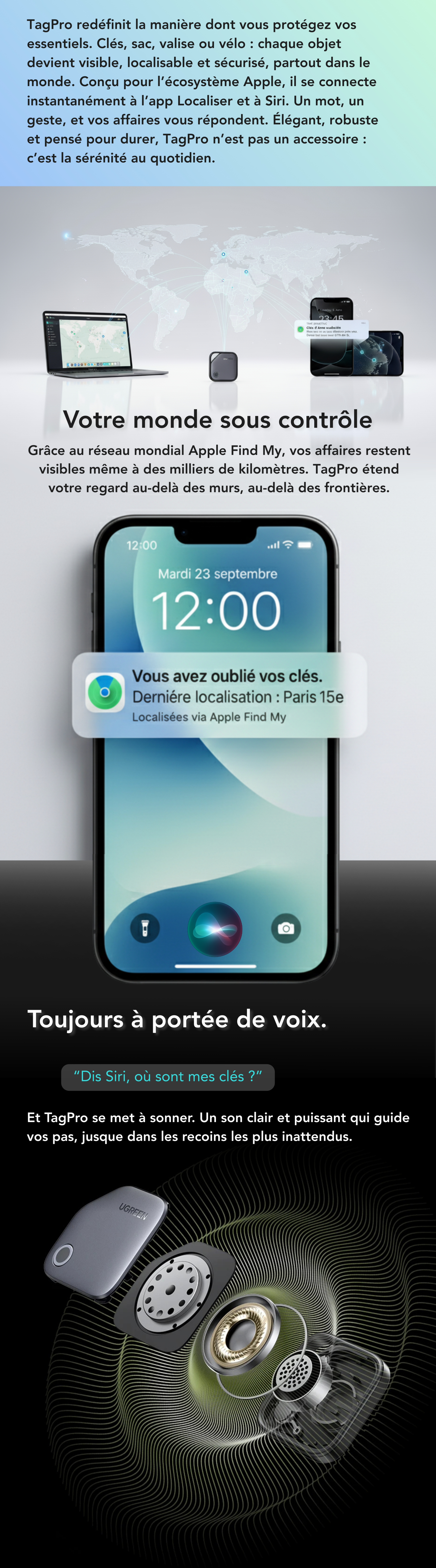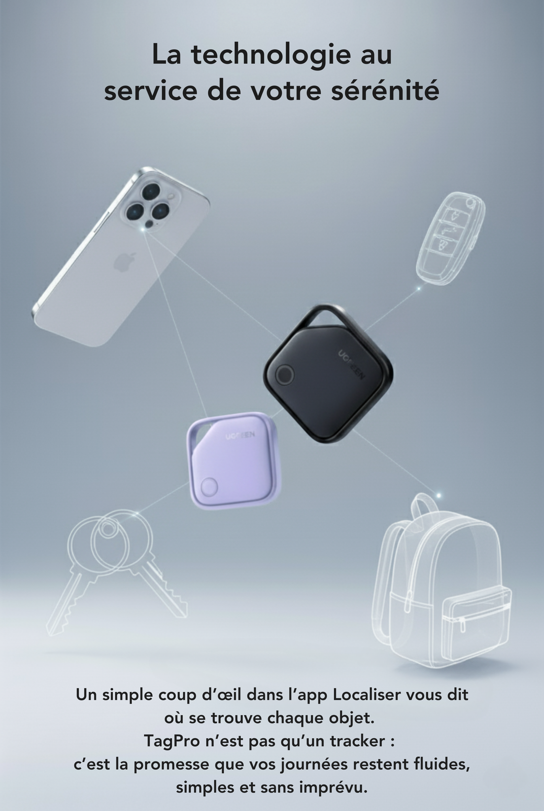 Avec TagPro, nous voulons aller au-delà du “pratique”. Nous voulons offrir la tranquillité d’esprit, la certitude de toujours retrouver ce qui compte, et l’assurance de posséder un produit qui vous accompagnera longtemps, avec style et fiabilité.